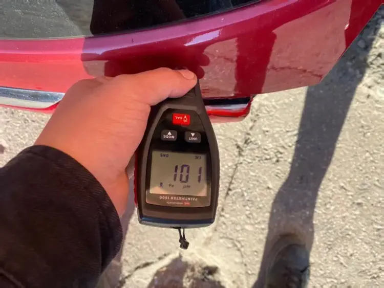- ЛКП и отсутствие ремонта: Толщиномером замеряем толщину лако-красочного покрытия в 7 точках. Показатели должны быть в диапазоне 100-130 микрон, что соответствует заводской норме. Резкие скачки толщины указывают на шпаклевку.