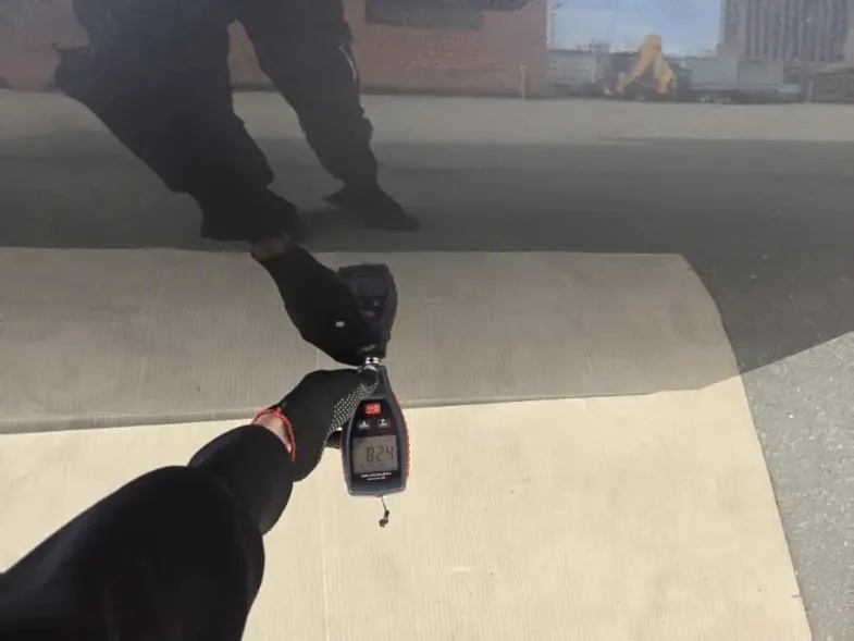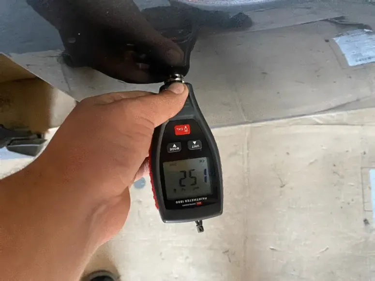 • ЛКП: Замер толщины лако-красочного покрытия в пяти точках (стойки, центральная часть, нижний край). Норма для оригинальной детали — 110-130 микрон.
